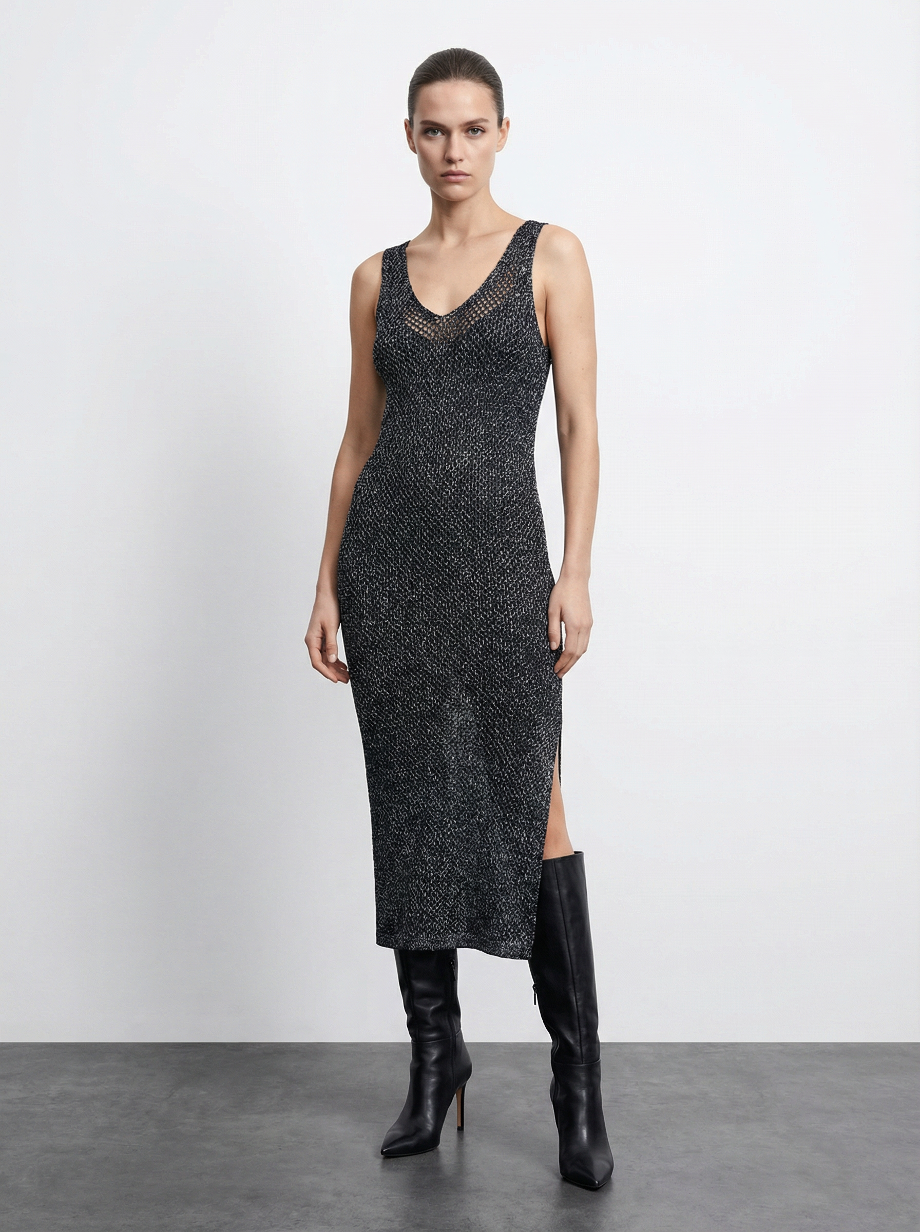GÜMÜŞ SİMLİ LACİVERT ELBİSE